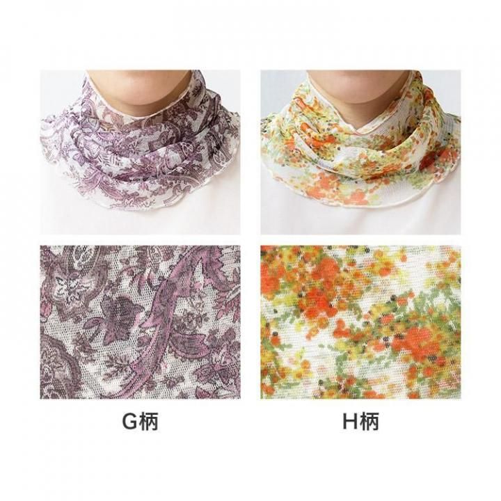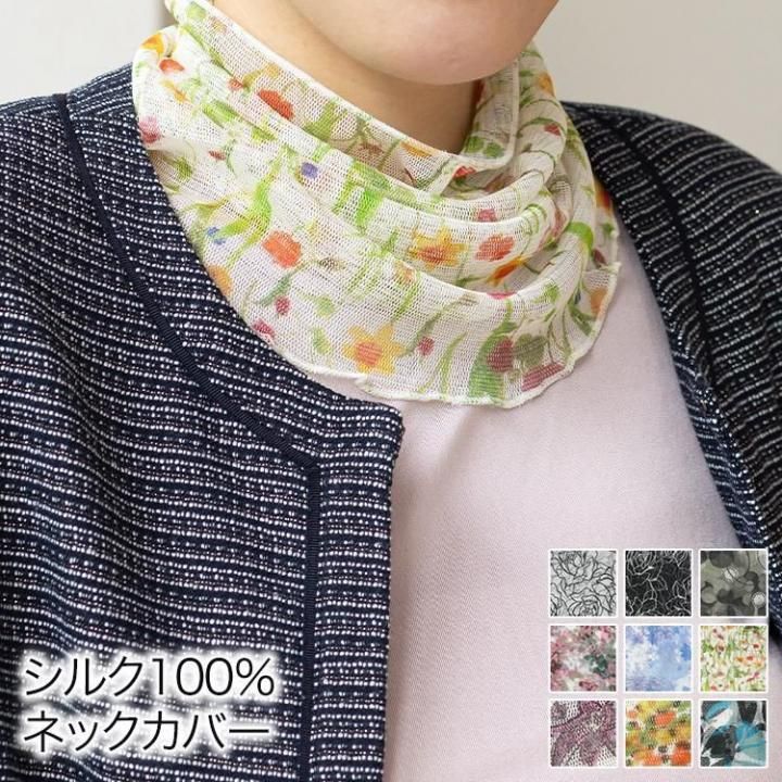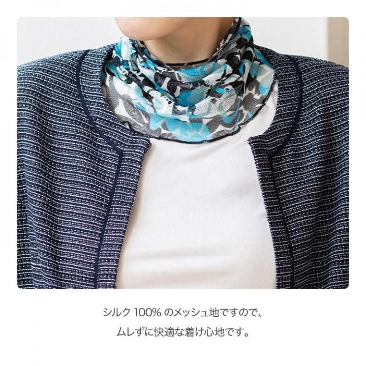 シルク100%プリントネックカバー メッシュ地で快適な着け心地です。